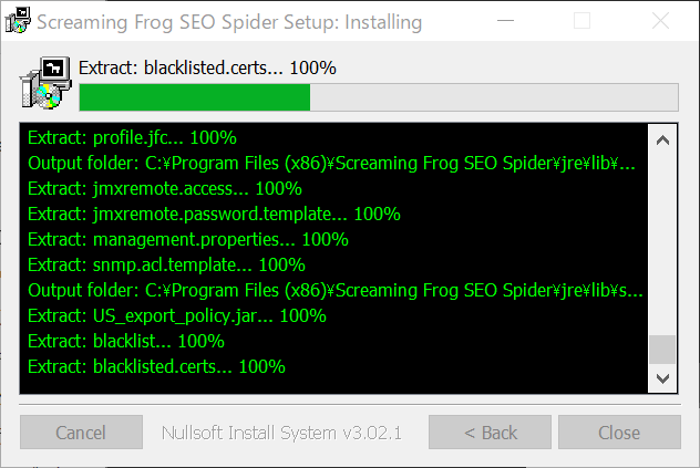 ゲージがMAXになったら「Close」ボタンを押して終了です(勝手に閉じたり画面が変わったりしません)