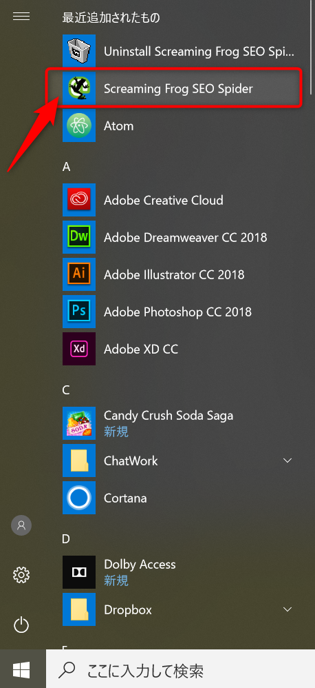 Windows10 だと Windowsボタンを押して表示されるアプリ一覧に「最近追加されたもの」としてFrogが登場します!