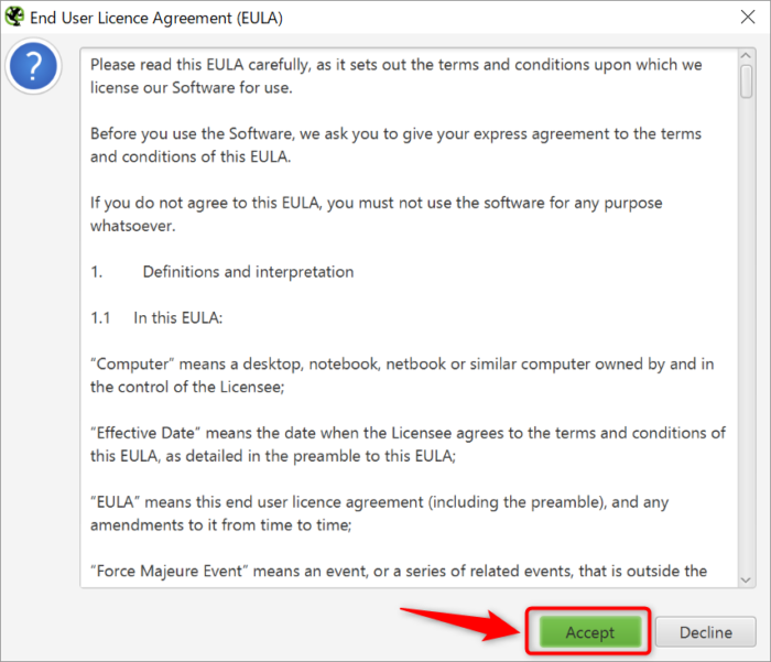 起動すると、「利用規約」への同意が求められます。「Accept」を選択して使えるようにしましょう。
