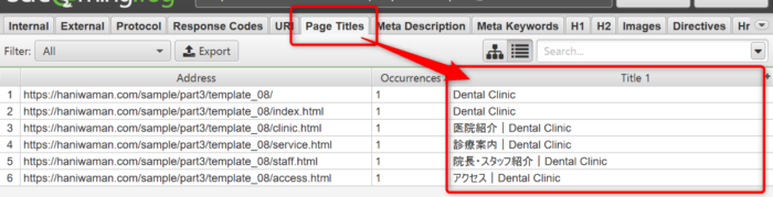 タイトルタグ、ディスクリプションはSEO的には必須の設定項目です。他社様の内部SEOチェックであったり、新規サイト制作後の内部SEOチェックで使うことができる機能です。