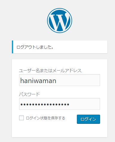 wp_userで登録した「user_login」と「user_pass」でログインしてみましょう。