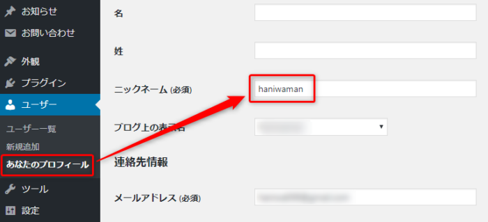 ニックネームを入力して更新すれば、「ブログ上での表示名」を選択できるようになります。ここからブログで表示させる名前を選択することが可能です。