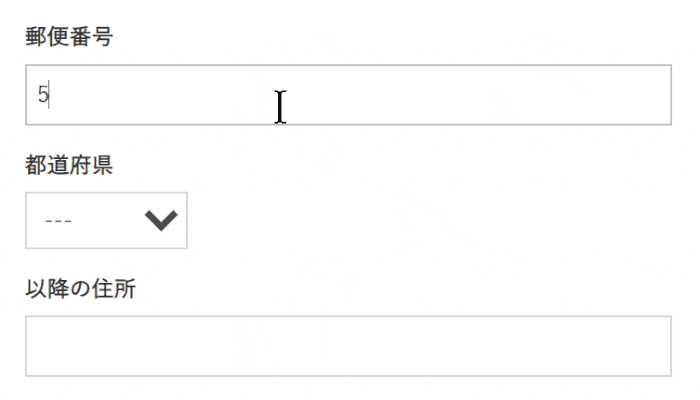 keyupのイベントを使うことで郵便番号に入力されるたびに処理を動かせるようになっています。