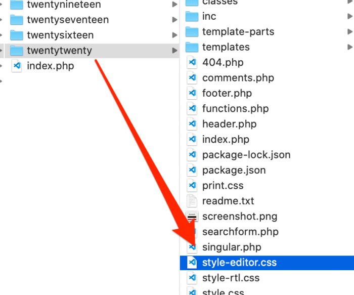 そして、style-editor.cssをテーマフォルダ内に追加してあげます。