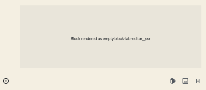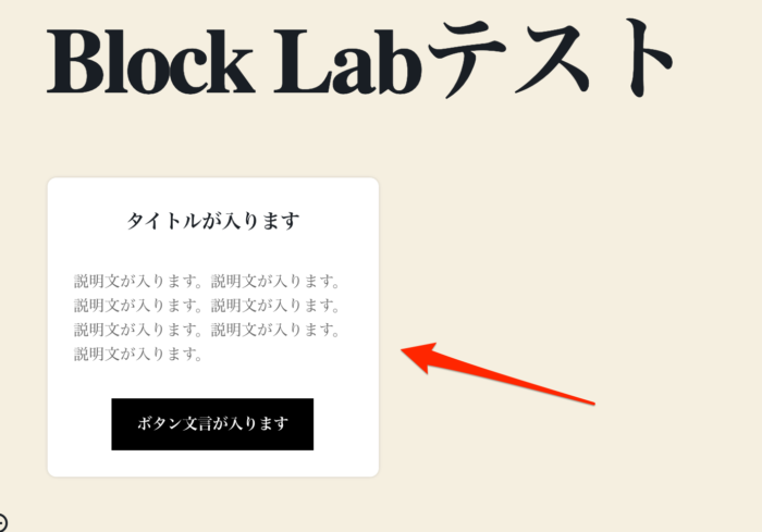 戻ってみると、「Block rendered as empty.block-lab-editor__ssr」として、まだ使えないようです。。。