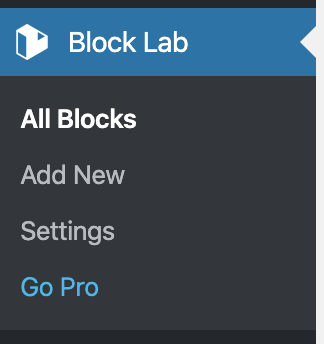 インストールされると左側に「Block Lab」のメニューが登場します。