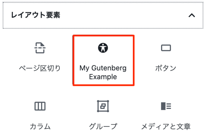 「レイアウト」パネルから、作成した「My Gutenberg Example」を選択すると、、、