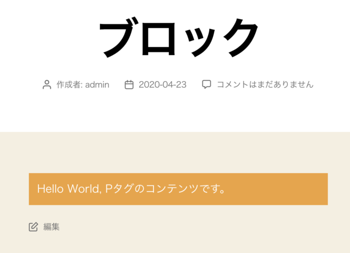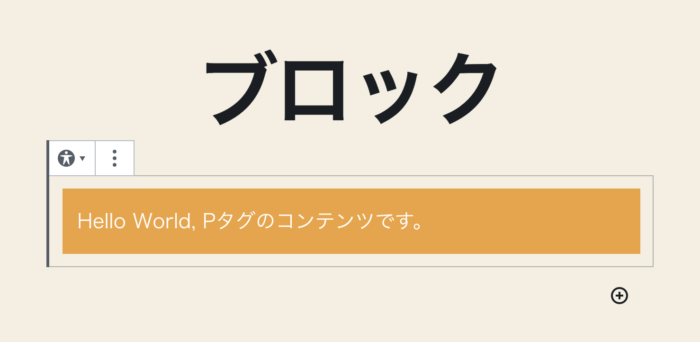 Gutenbergにオリジナルなブロックを作成する方法です。公式のチュートリアルを参考にしながら、以下のようなpタグで囲まれた固定値のブロックを作っていきます。