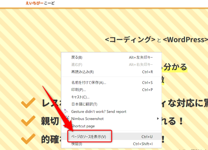 なので、どんなHTML構造で、どんなCSS設計で、どんなJavaScriptで実装されているかを確認したければ、実際のソースコードを見ればいいわけです。そのソースコードを見る方法ですが、Chromeであれば右クリックして「ソースを表示」を選択するだけです。