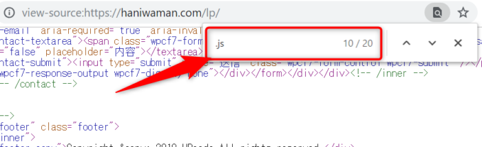 Ctrl + Fで「.js」と入力して検索してみましょう。