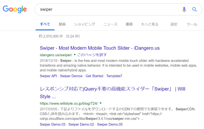 こちらも大量に記事が出てきます。スライダー系の有名なライブラリなので検索結果も多かったです。