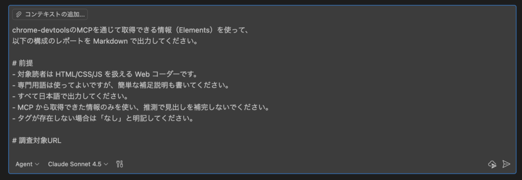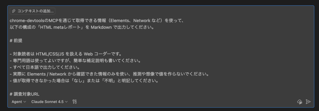 なお、AIが見れる情報としては基本的にChromeのデベロッパーツールで確認できる内容すべてです。なので、他にもデベロッパーツールのここをチェックしている、という項目がある方はAIに任せるアイデアが出てきやすいかなと思います。