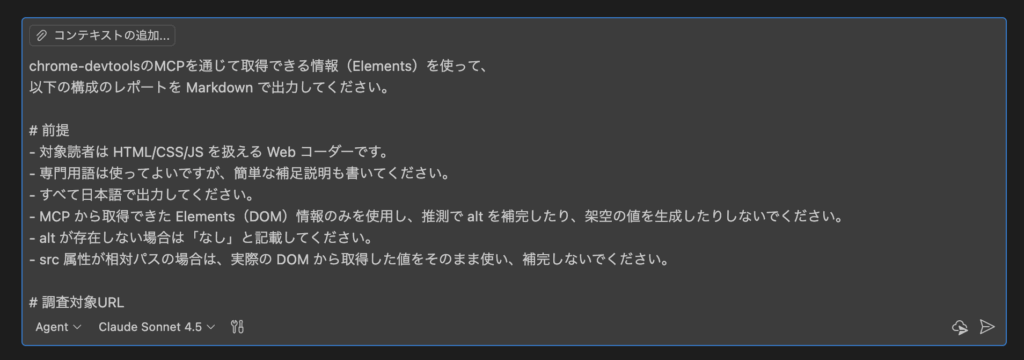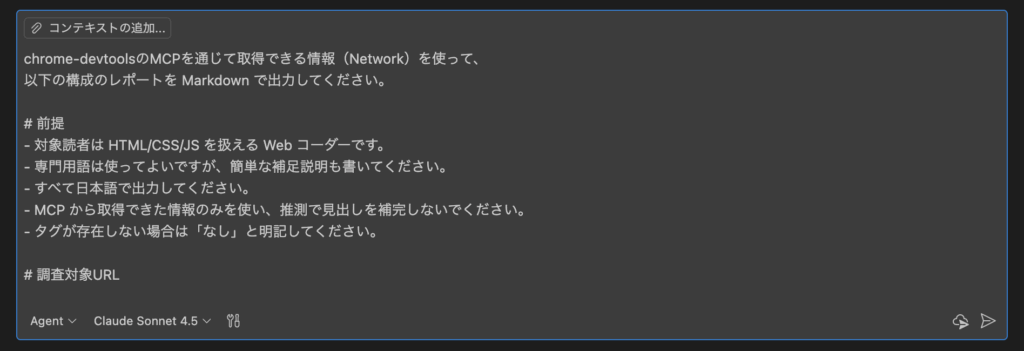 これらの人間が目視で確認している内容ですが、Chrome DevTools MCPを活用することでAIに代わりに確認してもらうことが可能です。