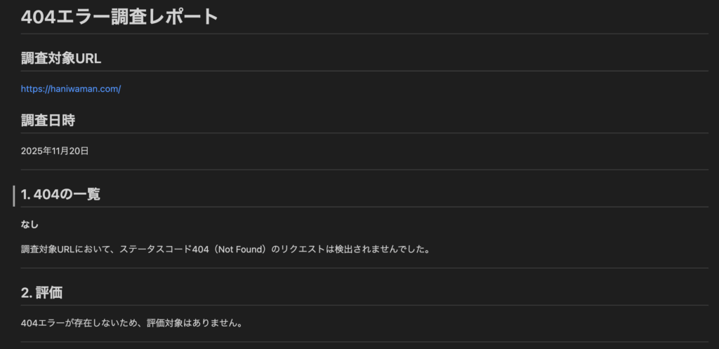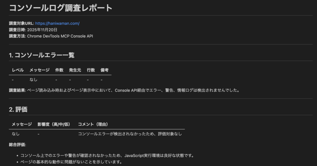 レポートを作成してくれました。こちらもエラーはなさそうです!