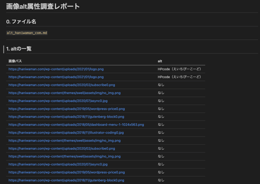 レポートを作成してくれました。サムネイル画像にaltの設定がありません。