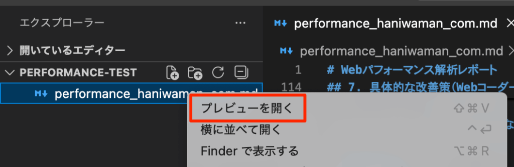 エクスプローラーから作成してくれたレポートを右クリック→プレビューを開くで開いてみます。