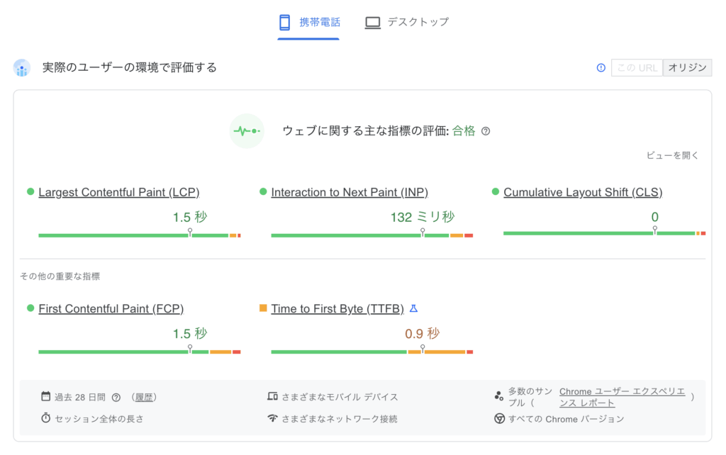 Webに関する主な指標(Core Web Vitals)が「合格」であれば対応は不要かも