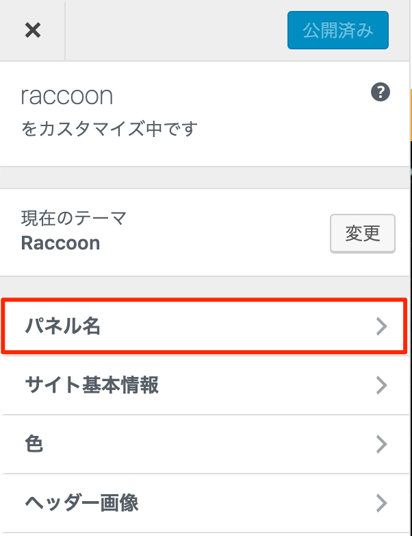 パネルは外観 → カスタマイズを開いた時に最初に登場するオリジナルな項目になります。