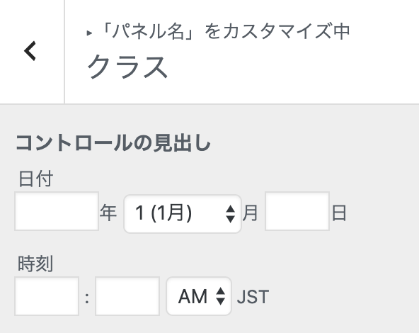 日時を指定できるクラス。WP_Customize_Date_Time_Controlというクラスを指定してあげます。(このクラスを採用しているカスタマイザーは今のところ見たことがありません…)