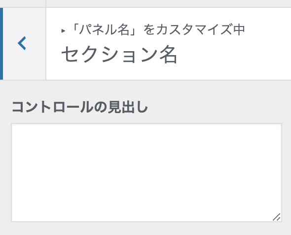 カスタマイザーの注意点として、パネルだけ作るということはできなくて、パネルを作るならセクションからコントロールまで用意してあげないと表示されることはありません。