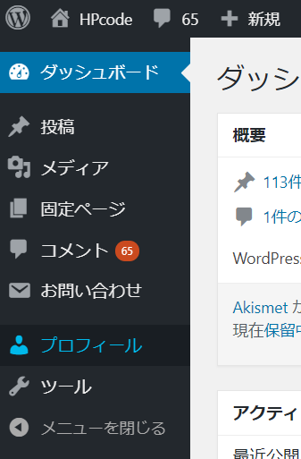 add_action('admin_bar_menu', 'remove_bar_menus', 201);管理画面メニューカスタマイズ後の表示