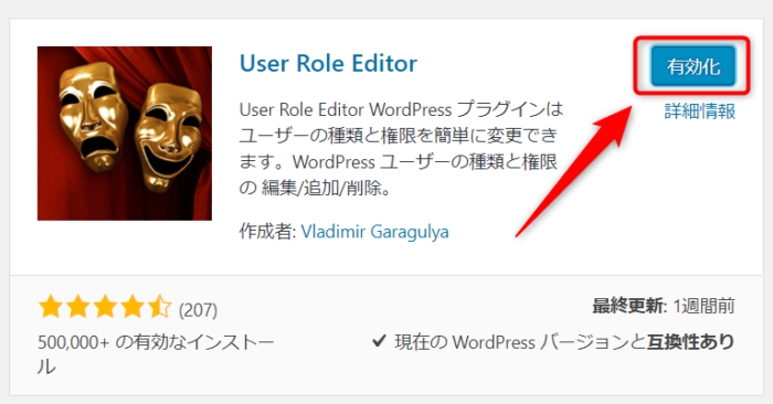 「User Role Editor」というプラグインを使って、はにわまんの権限を追加していきます。