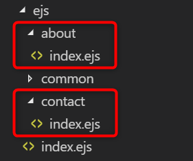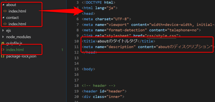 このように、全部の.ejsファイルが階層を維持したまま作られて、かつ変数の値もそれぞれタイトルタグに反映されています。