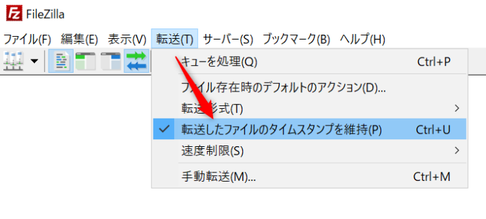 メニューの転送 → 転送したファイルのタイムスタンプを維持 にチェックを入れればOKです。