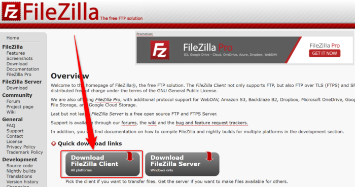 FileZillaの公式サイト → FileZilla – The free FTP solution