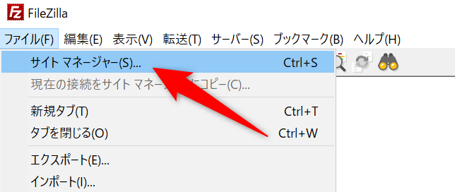 ファイル → サイトマネージャー からサイトマネージャーを開いてください。
