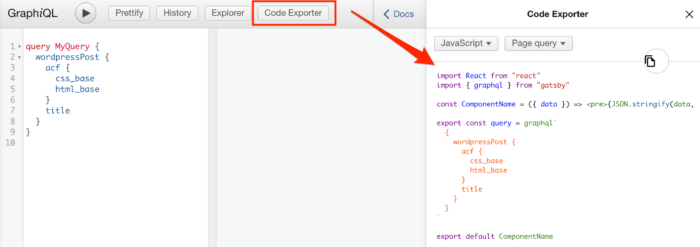 <pre><code>{ data.wordpressPost.acf.css_base }</code></pre>
