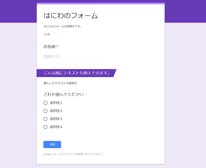お手軽すぎるので、デザインを意識しないようなサイトだったらGoogleフォームで代用しちゃってもいいかもしれません。