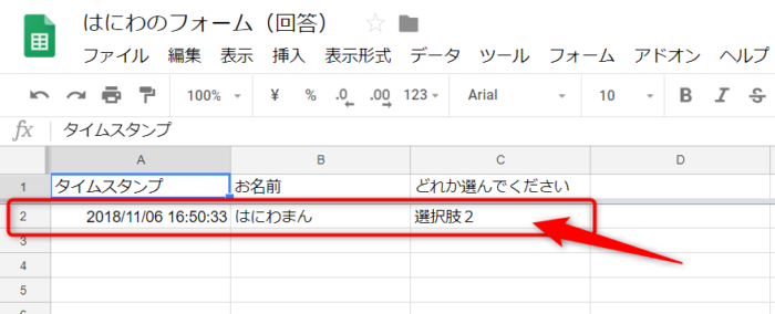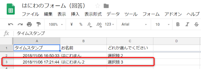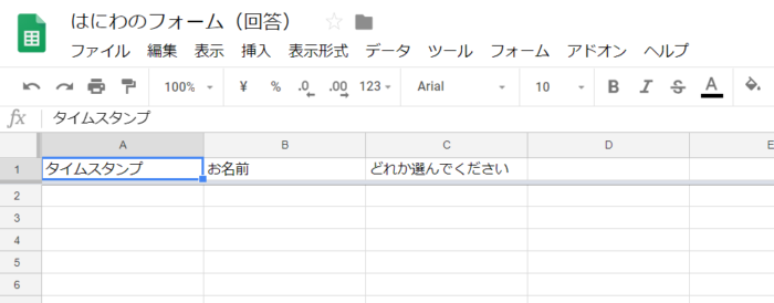 Googleフォームの送信内容をスプレットシートへ書き出す