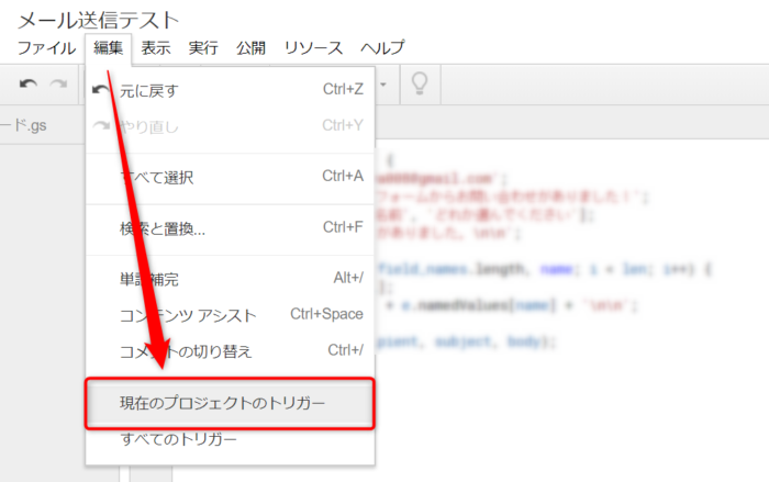 編集 → 現在のプロジェクトのトリガー を開きます。