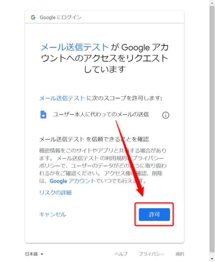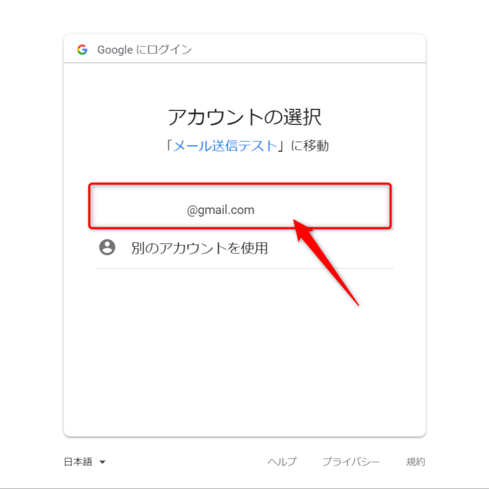 すると、Googleアカウントの認証を求められます。