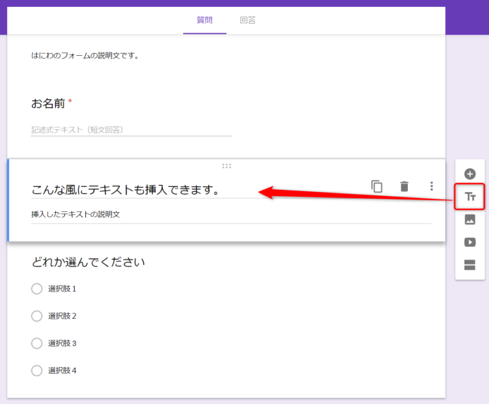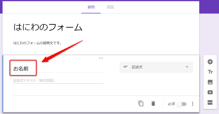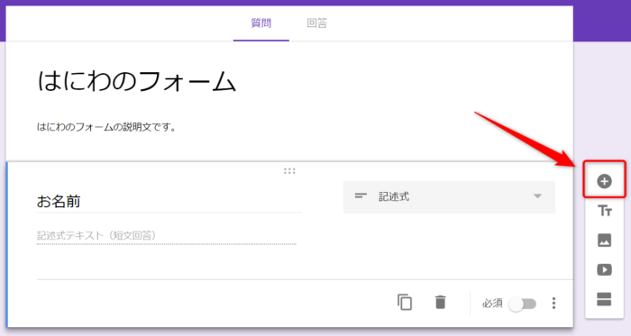 Googleフォームの項目を追加する