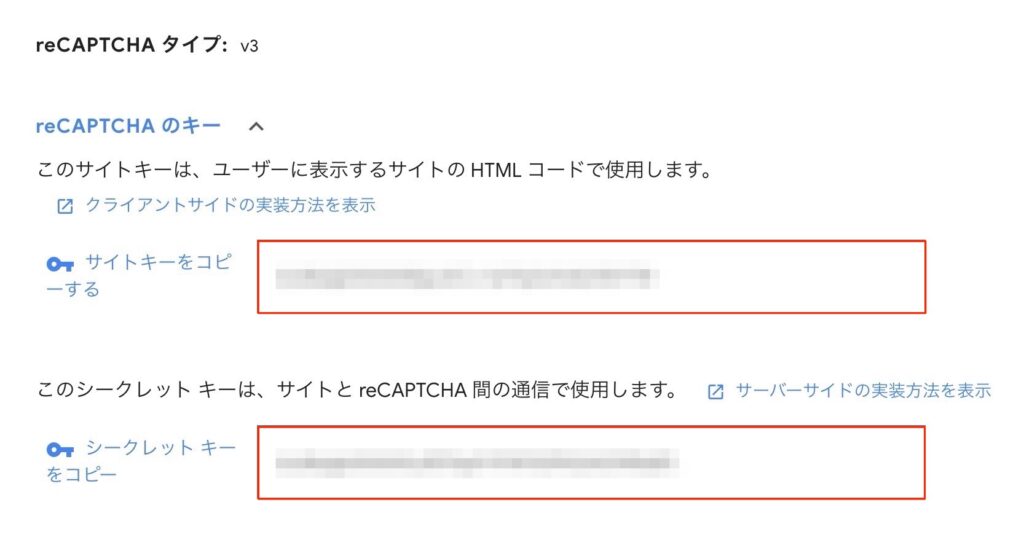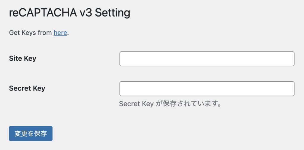 サイトキーとシークレットキーはWordPress管理画面から入力するので、この画面を開いたままWordPress管理画面の設定をしていきましょう!