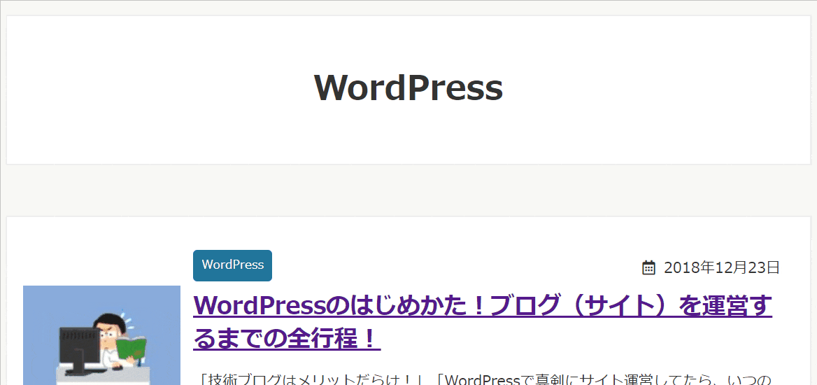 <?php wp_reset_postdata(); ?>今回のサブループを使うことによって、例えば以下のようなページを作ることができます。