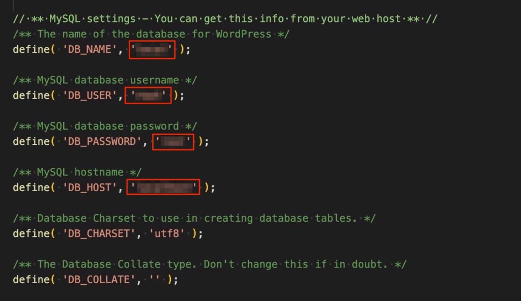 wp-config.phpの旧DB情報を新DB情報に変更します。新サーバーへのDBはあらかじめ用意しておいてください。