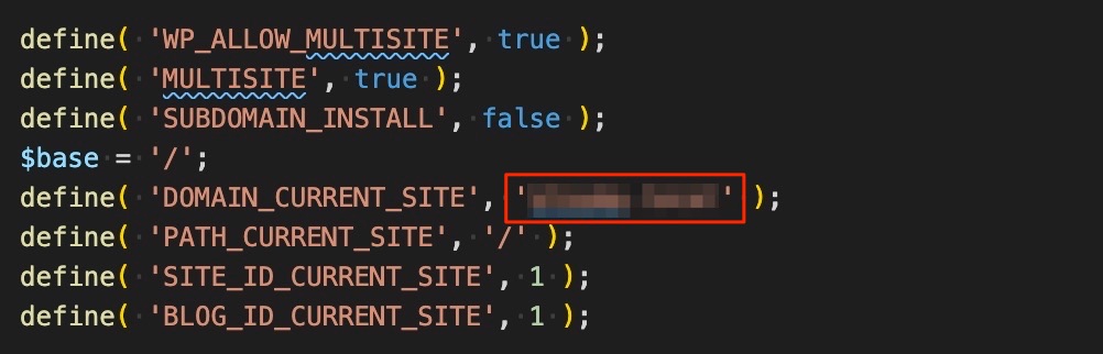 マルチサイトの場合は、wp-config.phpにドメイン情報が記載されているはずです。こちらは旧ドメインから新ドメインに変更しておきましょう!