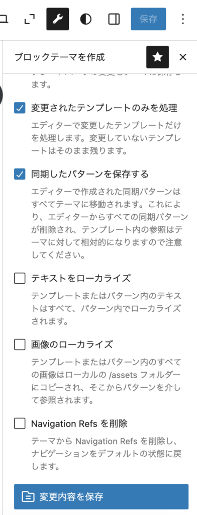 「ブロックテーマを作成」アイコンから「テーマへの変更を保存」します。