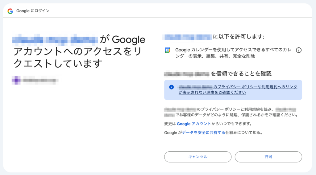 許可する権限の詳細が確認できます。問題なければ「許可」を押しましょう。