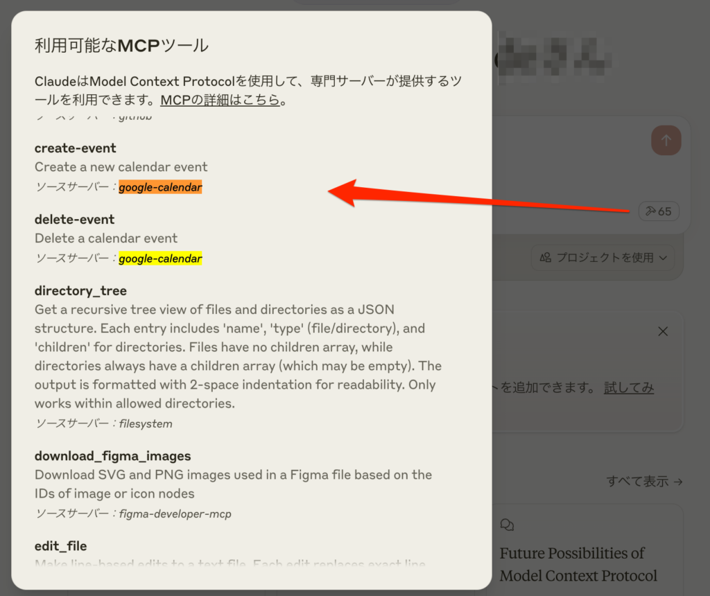 コードを修正して再起動して問題がなくなれば、右下の「利用可能なMCPツール」から確認が可能となります。