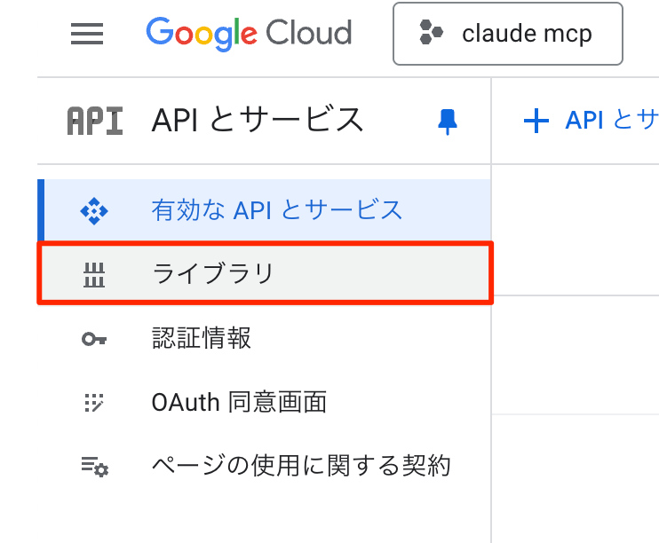 ※クイックアクセスにない場合は左上のハンバーガーアイコン内のメニューや、上部の検索ボックスで「APIとサービス」と入力すると辿り着きやすいと思います。