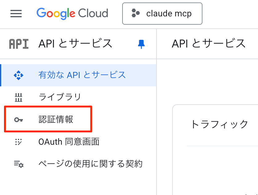 「APIとサービス」の画面に戻って、「認証情報」を選択します。