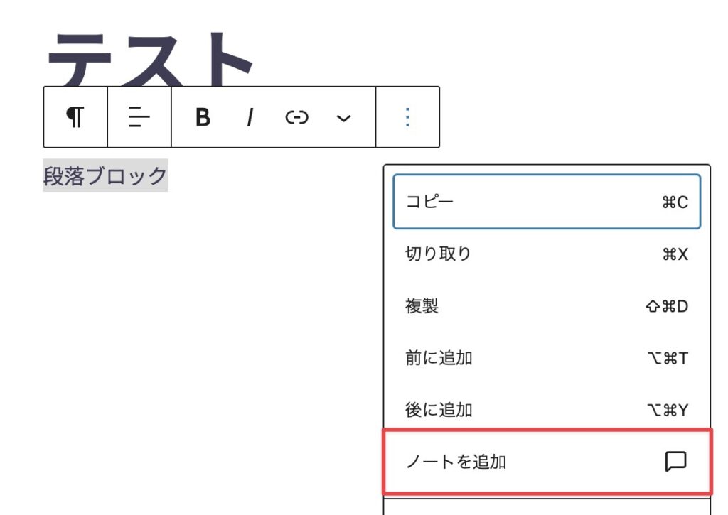 手順としては、ブロックで右クリック→ノートを追加(リストビューのブロックからも可能です)