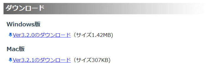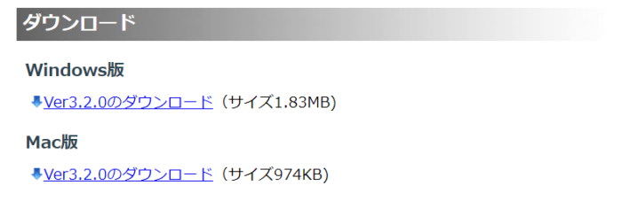 下の方に、Mac版、Windows版のそれぞれが用意されています。