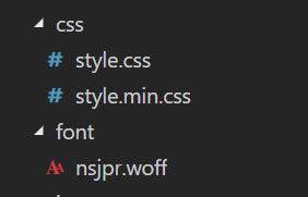CSSフォルダと同じ階層にfontというフォルダを作ります。その中に作成したwoffファイルを入れておいてください。階層としては以下のような感じのイメージです。