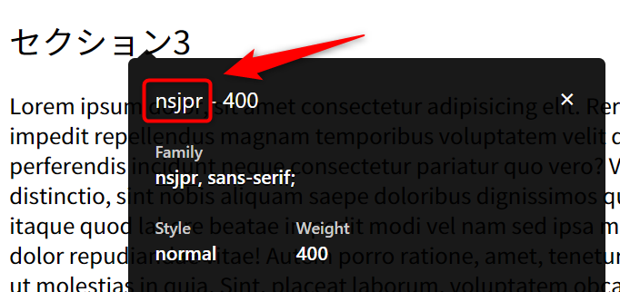 }これでサブセット化して軽量化された「Noto Sans Japanese」が読み込まれるようになりました。