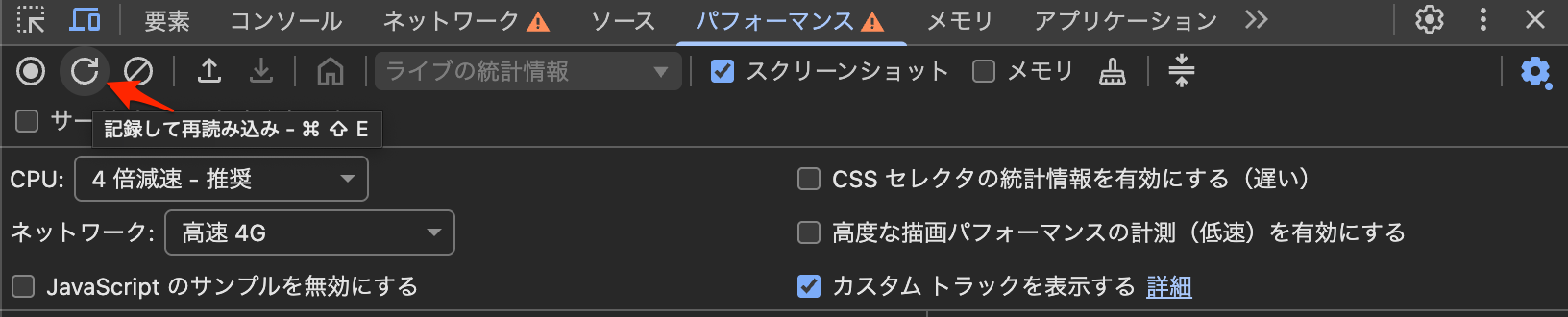 Chromeデベロッパーツールで「パフォーマンス」を見よう